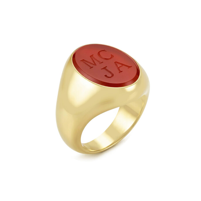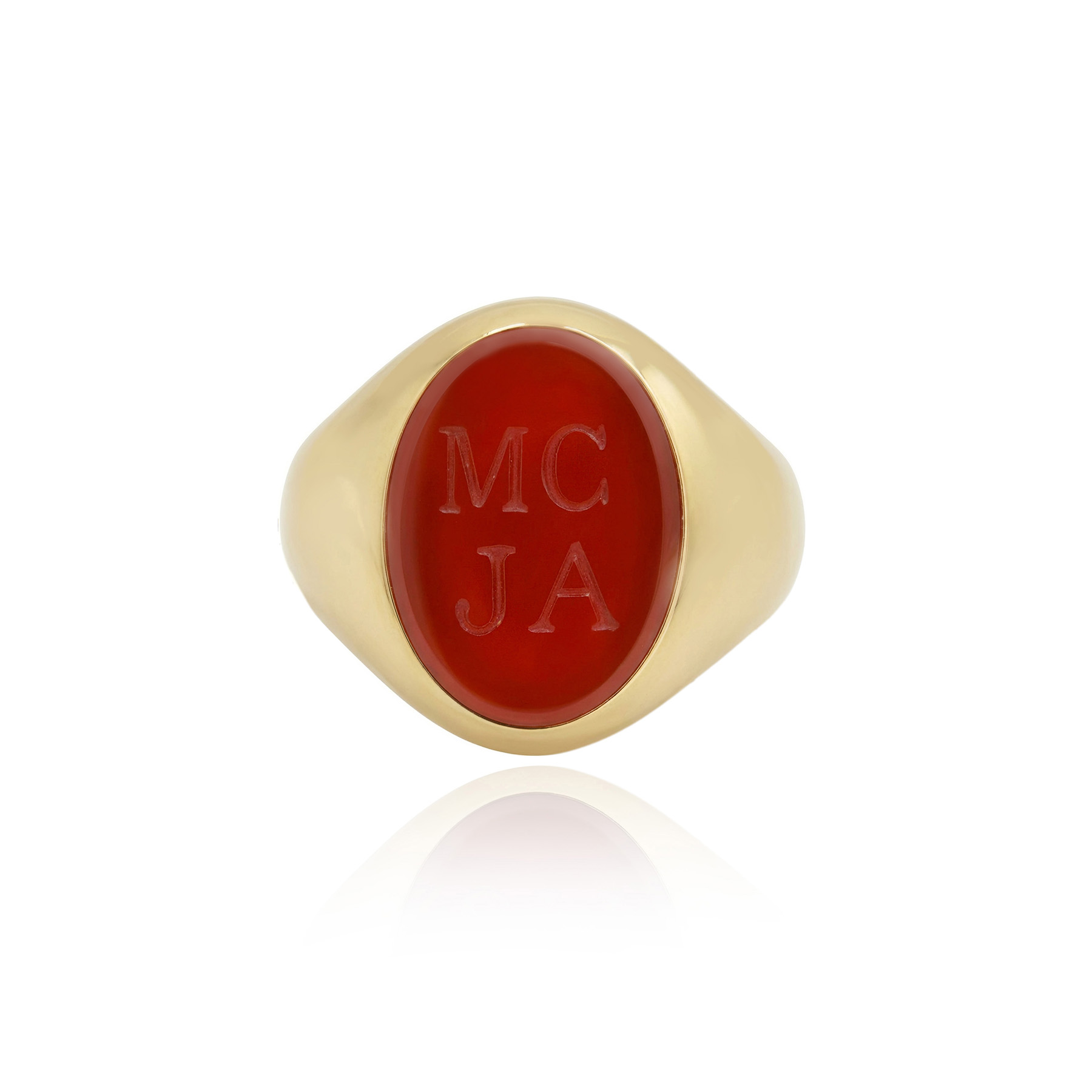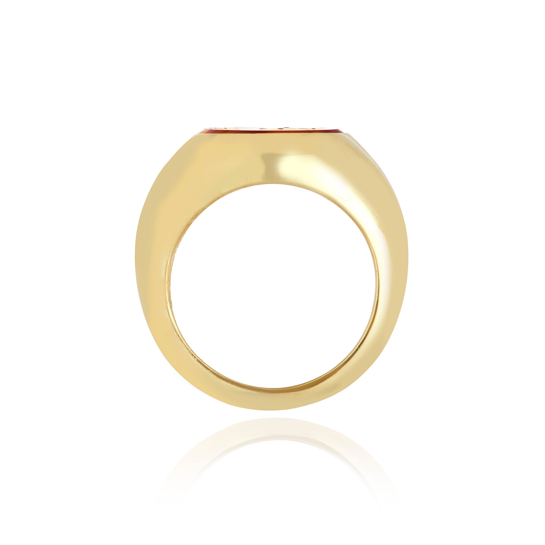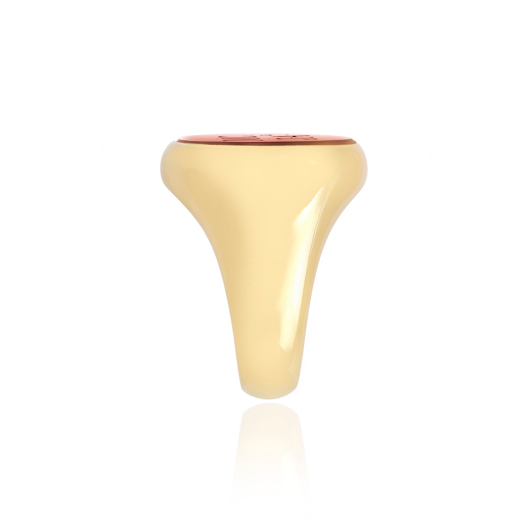 Anel Samba. Peça com 7 gramas de Ouro Amarelo 18k e Pedra Cornalina Natural Oval de 1,5 cm de altura e 1 cm de largura.