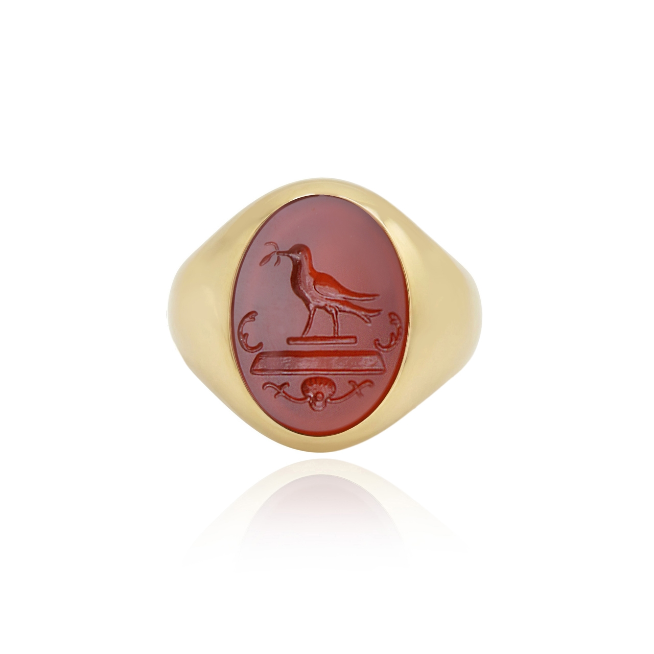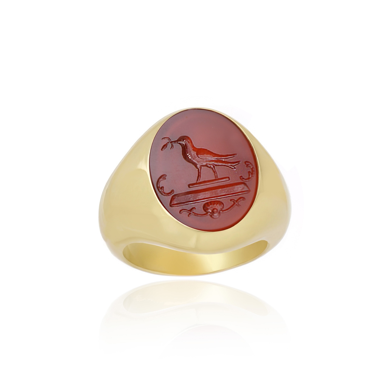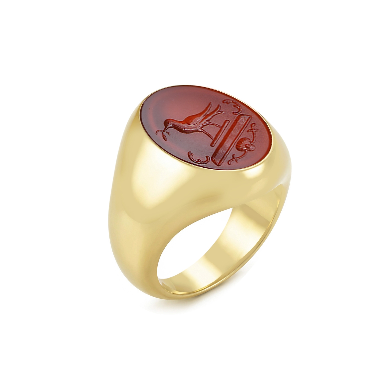 Anel Samba. Peça com 7 gramas de Ouro Amarelo 18k e Pedra Cornalina Natural Oval de 1,5cm de altura e 1cm de largura.